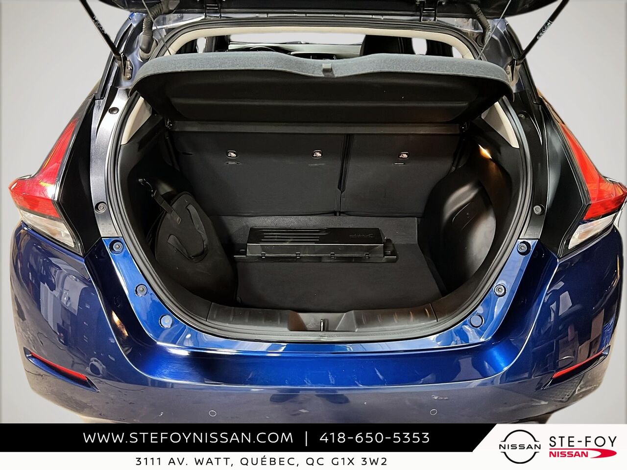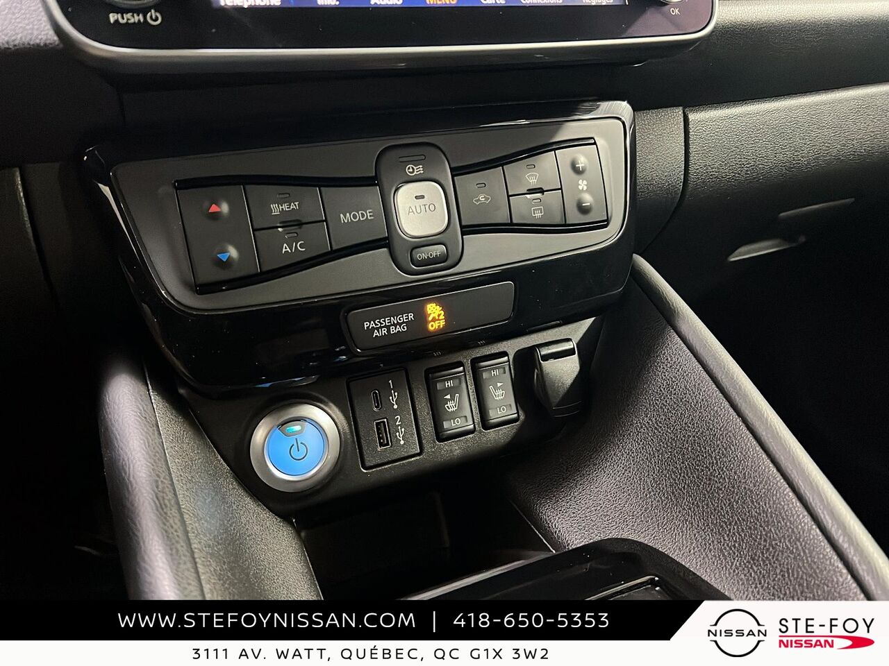 Découvrez la Nissan LEAF SL PLUS à hayon 2020, une voiture électrique d'occasion qui allie technologie avancée et confort. Équipée d'une batterie lithium-ion de 62 kWh, elle offre un temps de recharge rapide, soit 11 heures à 220/240 V et seulement 1 heure à 440 V. Profitez de la conduite avec le système de navigation intégré à commande vocale et le système de caméras à vue aérienne pour une sécurité accrue. Les sièges en cuir chauffants et le volant chauffant en cuir ajoutent une touche de luxe à votre expérience de conduite. Grâce aux services NissanConnect EV, vous pouvez gérer à distance la charge de la batterie et bien plus encore. Cette LEAF est idéale pour ceux qui recherchent une solution de mobilité écologique sans compromis sur le confort et la technologie. Pour plus d'informations, contactez-nous chez Ste-Foy Nissan au (418) 650-5353 ou visitez-nous au 3111 Av. Watt, Québec.