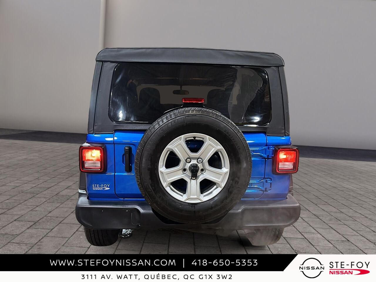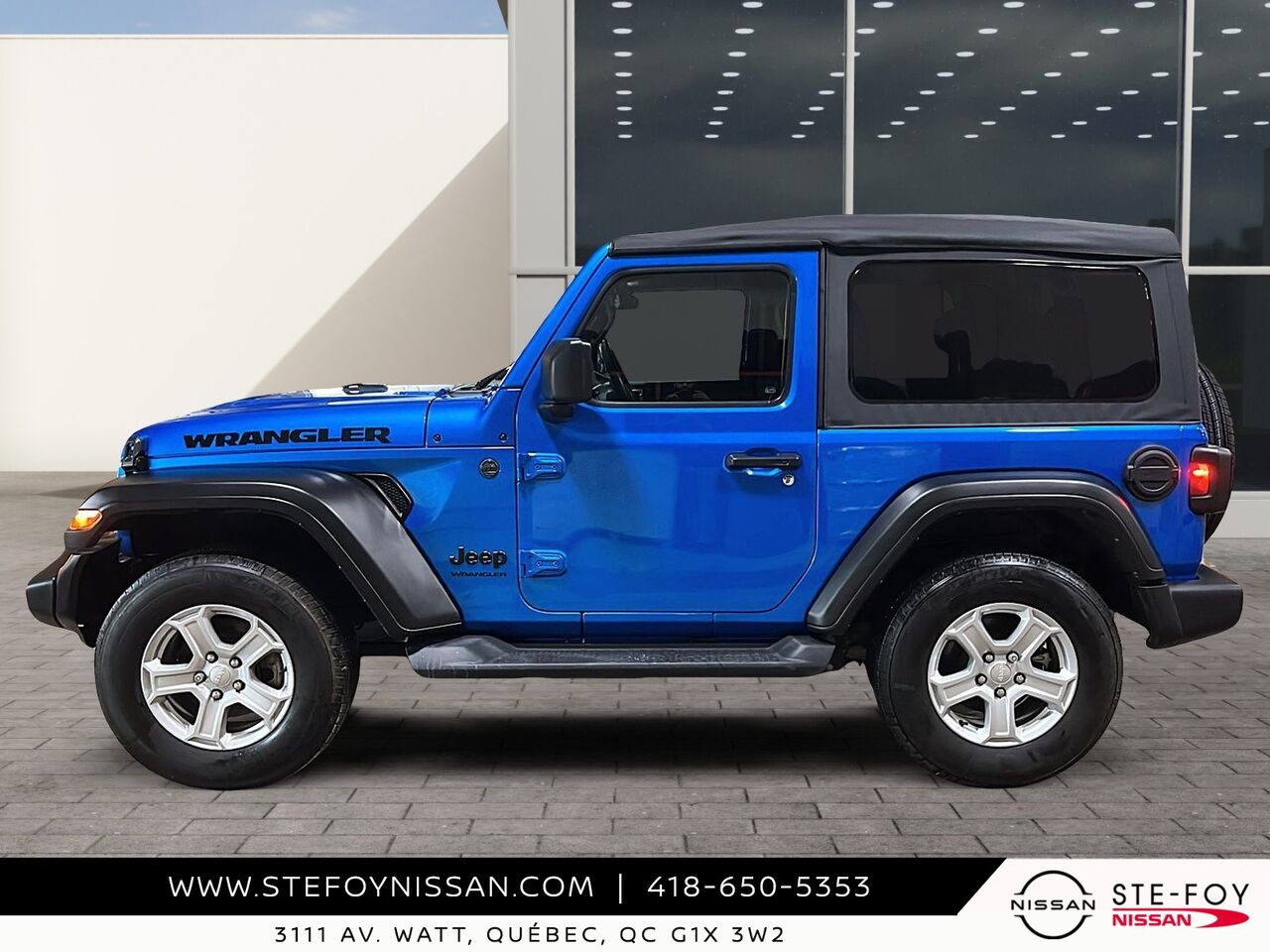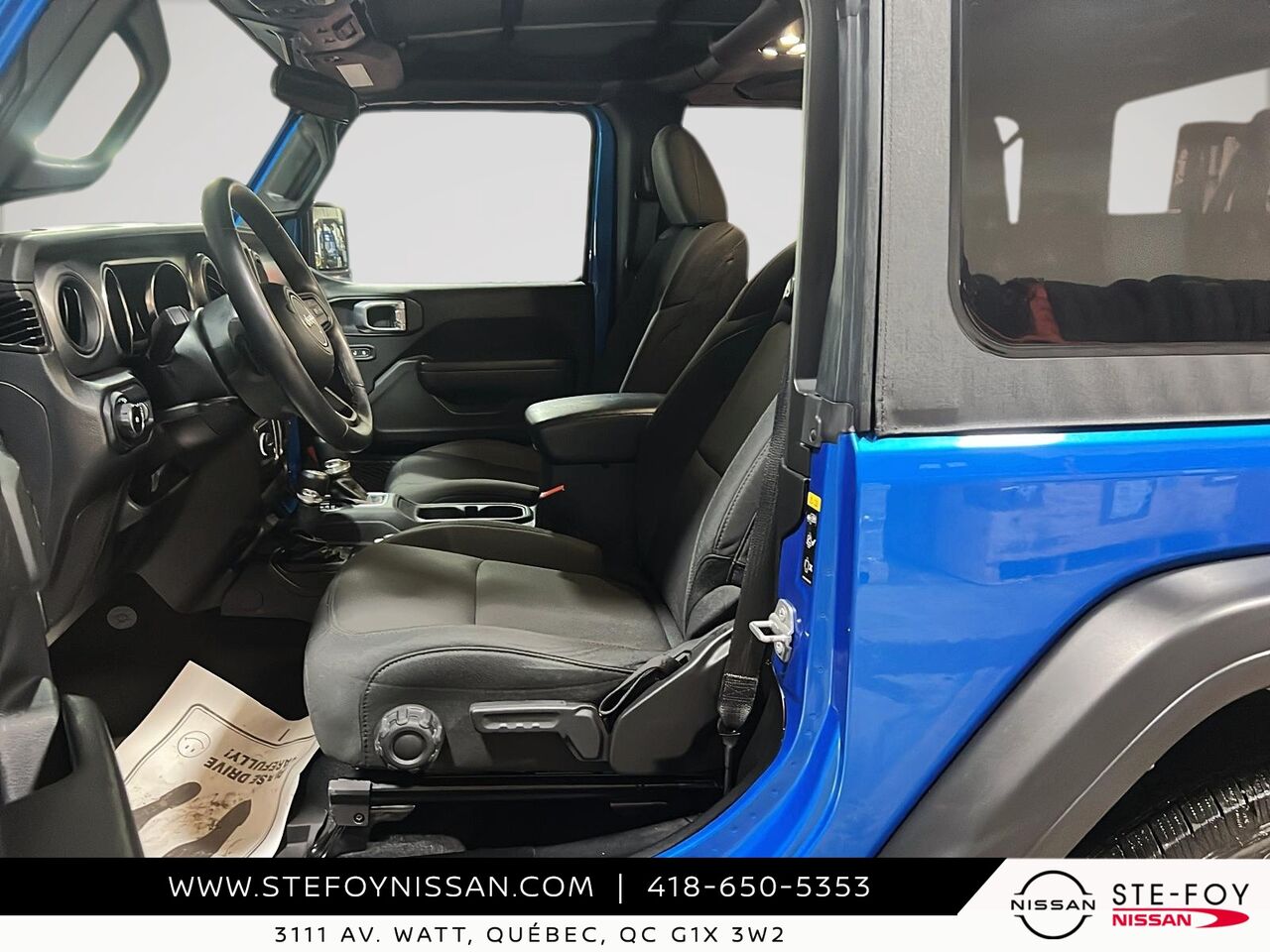 Découvrez le Jeep Wrangler 2022 Sport S 4x4, un véhicule d'occasion qui allie robustesse et fonctionnalité. Doté d'un moteur V6 et d'une transmission manuelle à 6 vitesses, il offre une expérience de conduite dynamique et engageante. Ce modèle est équipé de nombreuses fonctionnalités pratiques, telles que la caméra de recul ParkView, un système de communication mains libres avec Bluetooth, et un écran tactile de 7 pouces avec compatibilité Apple CarPlay et Android Auto. Profitez également du confort offert par la climatisation manuelle à 2 zones et des sièges baquets en tissu ajustables. Avec ses phares antibrouillards et son système d'échappement en acier inoxydable, ce Jeep Wrangler est prêt à affronter toutes les aventures. Pour plus d'informations, contactez-nous chez Ste-Foy Nissan au (418) 650-5353 ou visitez-nous au 3111 Av. Watt, Québec.