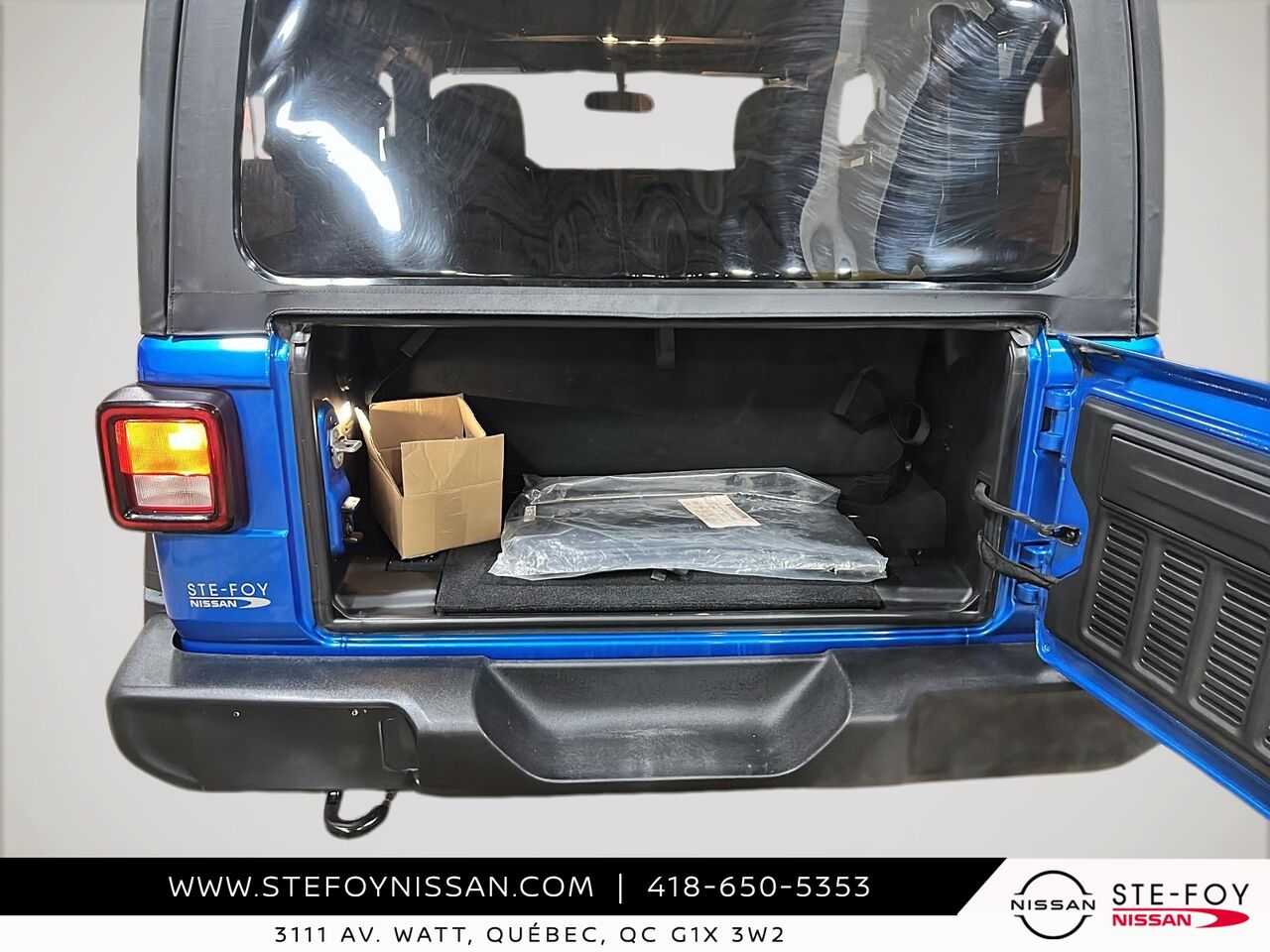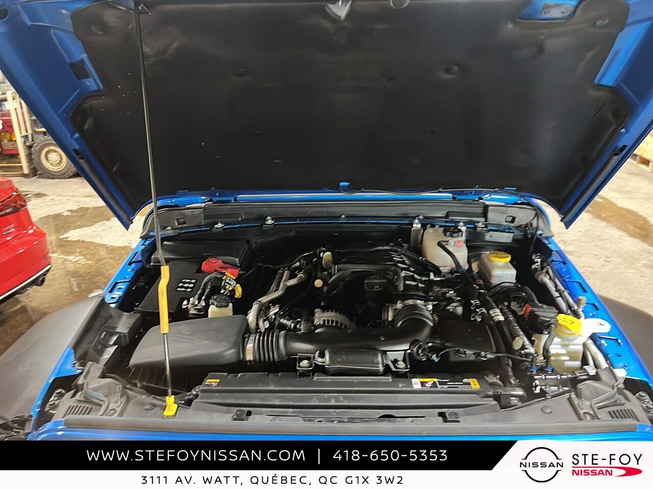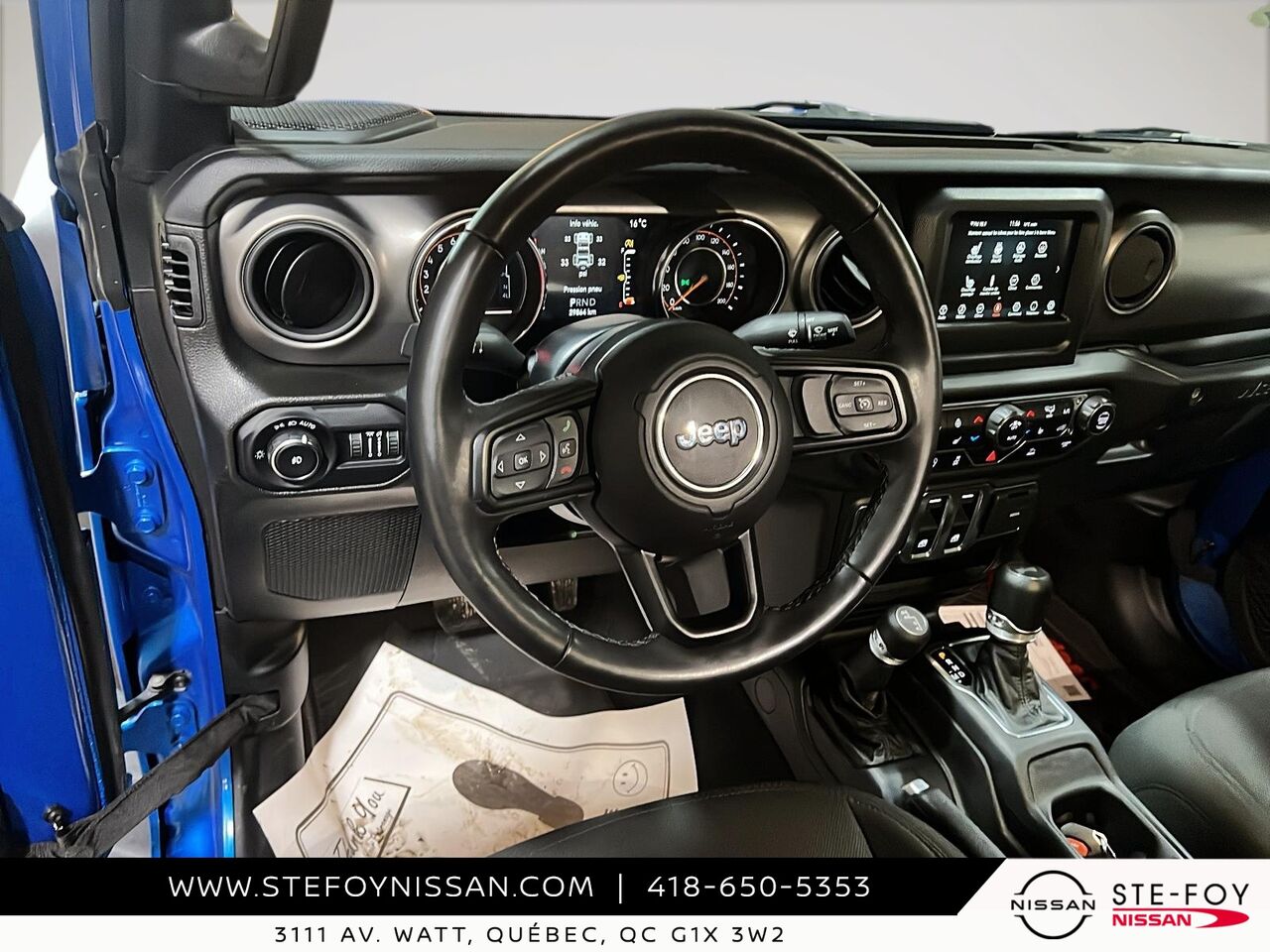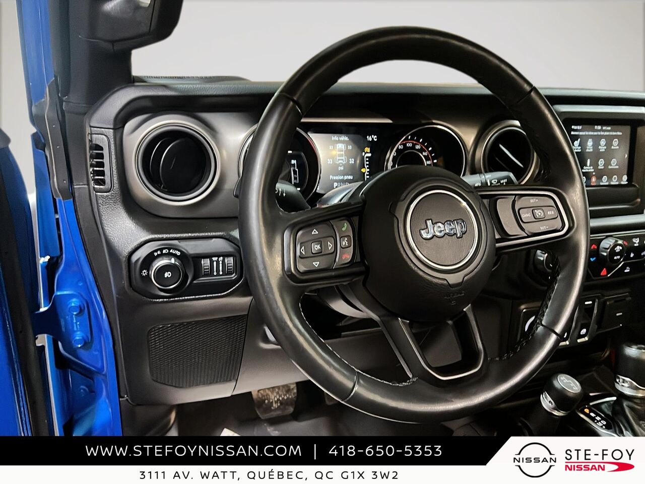 Découvrez le Jeep Wrangler 2022 Sport S 4x4, un véhicule d'occasion qui allie robustesse et fonctionnalité. Doté d'un moteur V6 et d'une transmission manuelle à 6 vitesses, il offre une expérience de conduite dynamique et engageante. Ce modèle est équipé de nombreuses fonctionnalités pratiques, telles que la caméra de recul ParkView, un système de communication mains libres avec Bluetooth, et un écran tactile de 7 pouces avec compatibilité Apple CarPlay et Android Auto. Profitez également du confort offert par la climatisation manuelle à 2 zones et des sièges baquets en tissu ajustables. Avec ses phares antibrouillards et son système d'échappement en acier inoxydable, ce Jeep Wrangler est prêt à affronter toutes les aventures. Pour plus d'informations, contactez-nous chez Ste-Foy Nissan au (418) 650-5353 ou visitez-nous au 3111 Av. Watt, Québec.