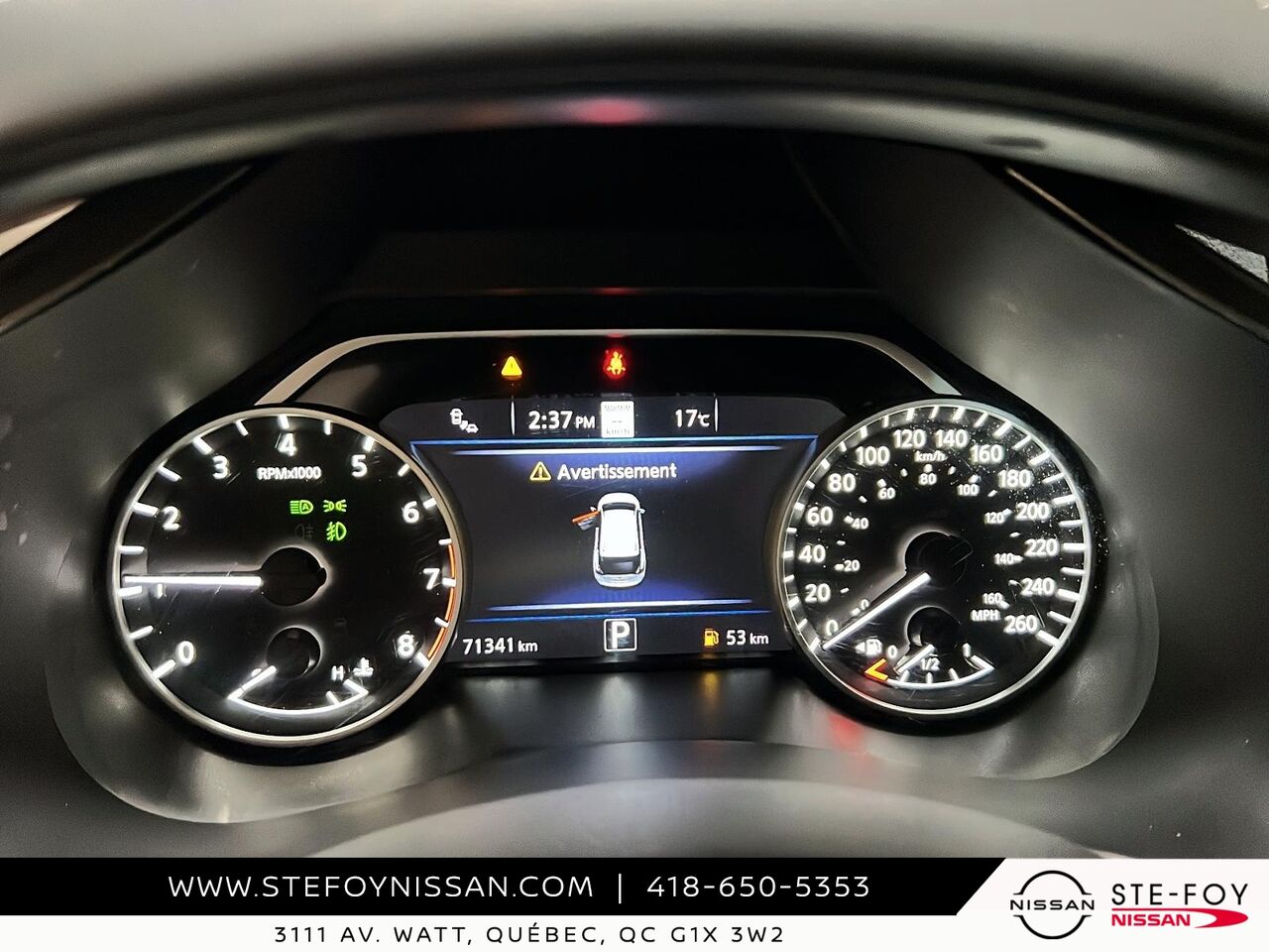 instruments -comprend : indicateur de vitesse, odomètre, température du liquide de refroidissement du moteur, tachymètre, compteur journalier et ordinateur de voyage